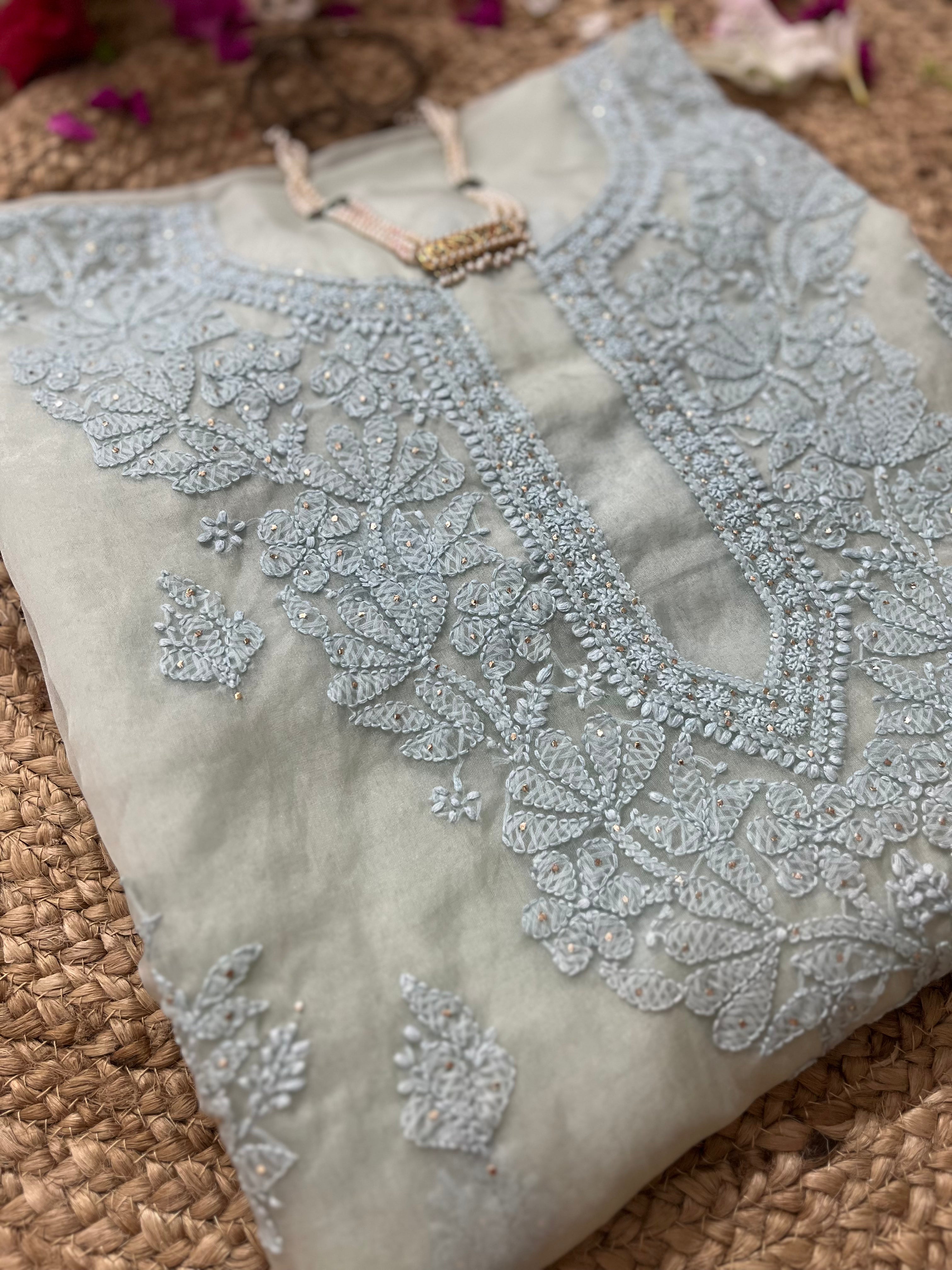 - Chikankari Collection: Suits, sarees, dupattas, and co-ords in luxurious fabrics like mulmul, cotton, georgette, and more.