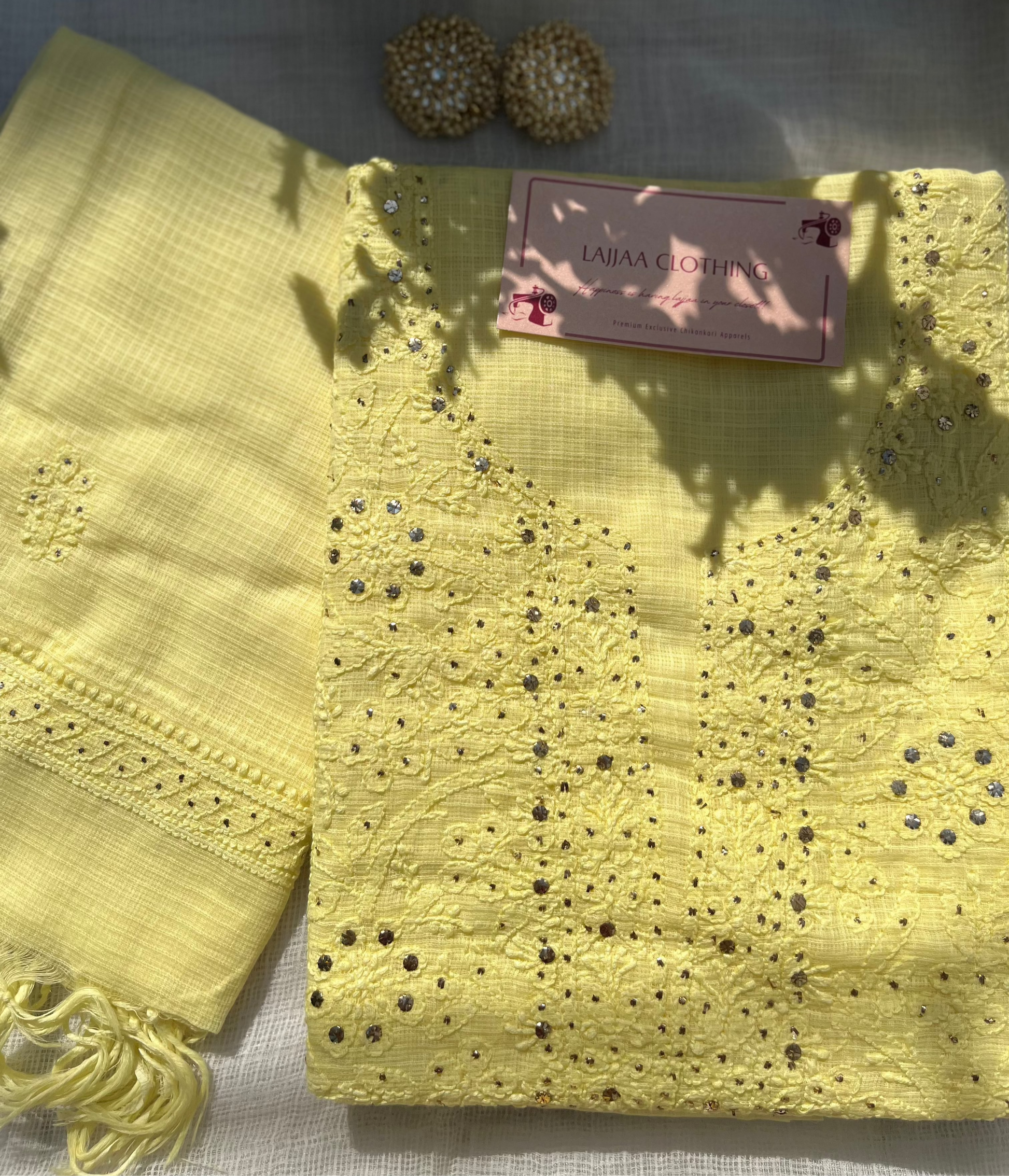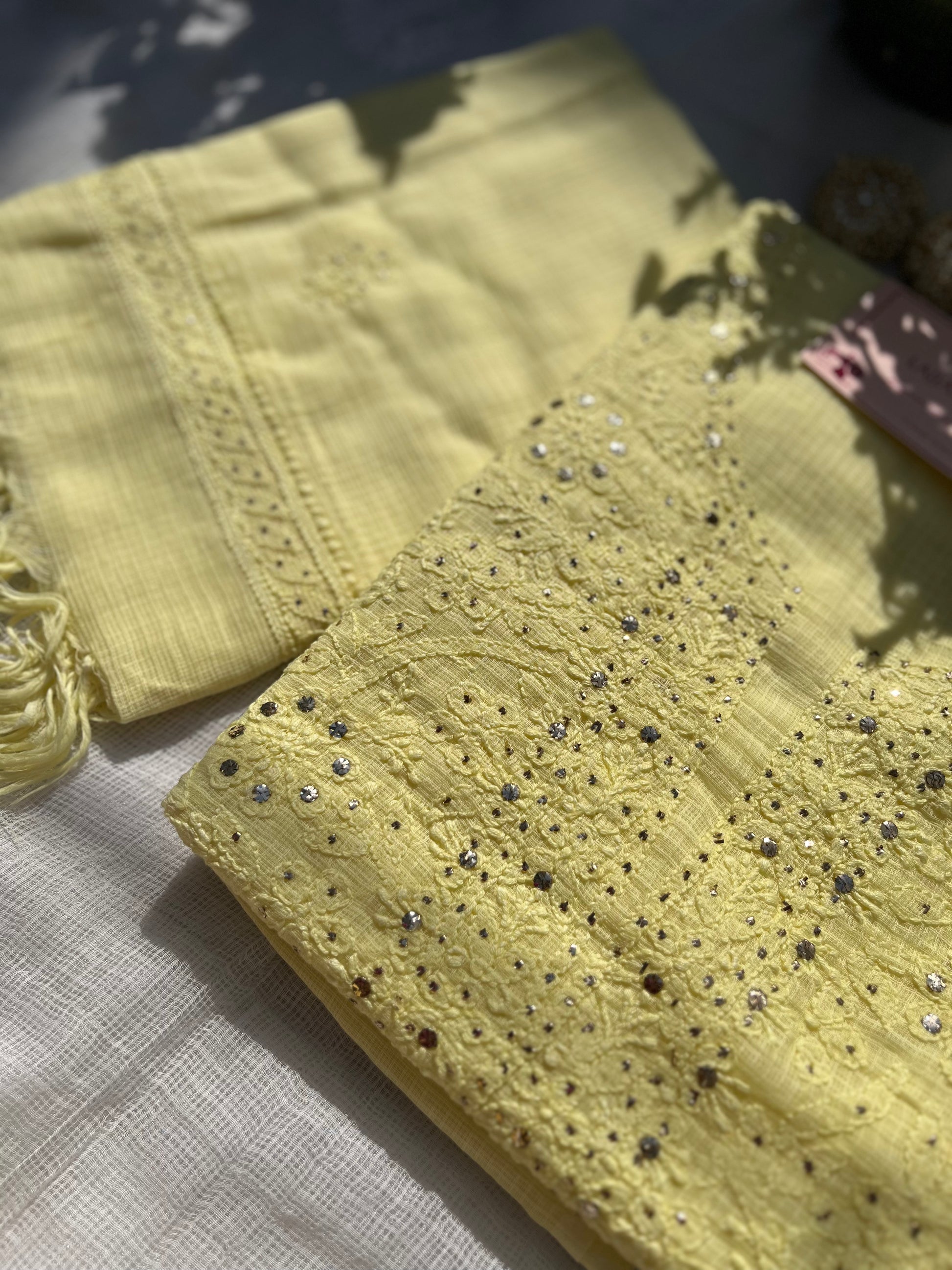 Yellow Kota Mukaish Chikankari Suit Set