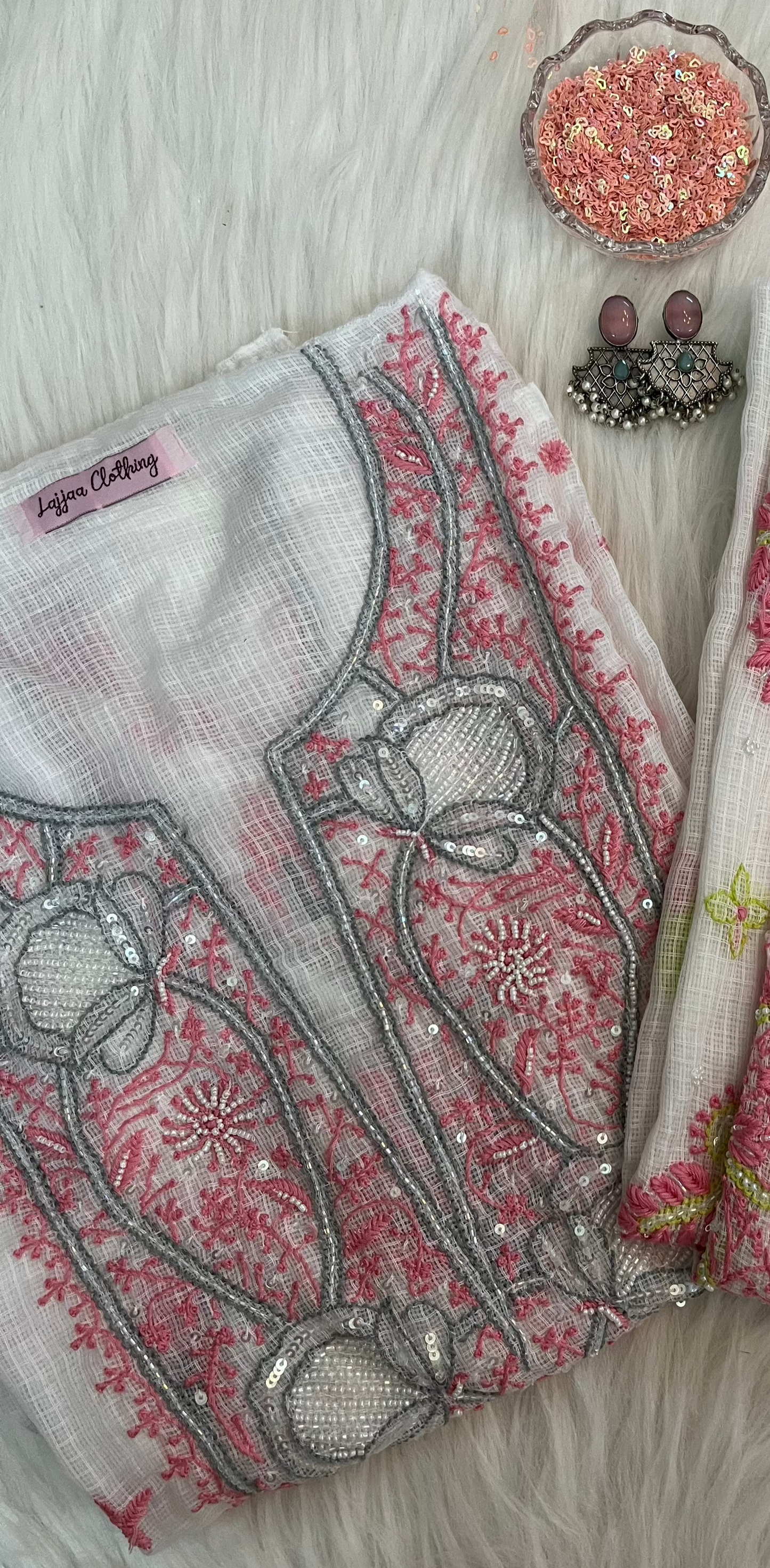 Kota Doriya Semi-Stitched Kurta in Grey and Pink