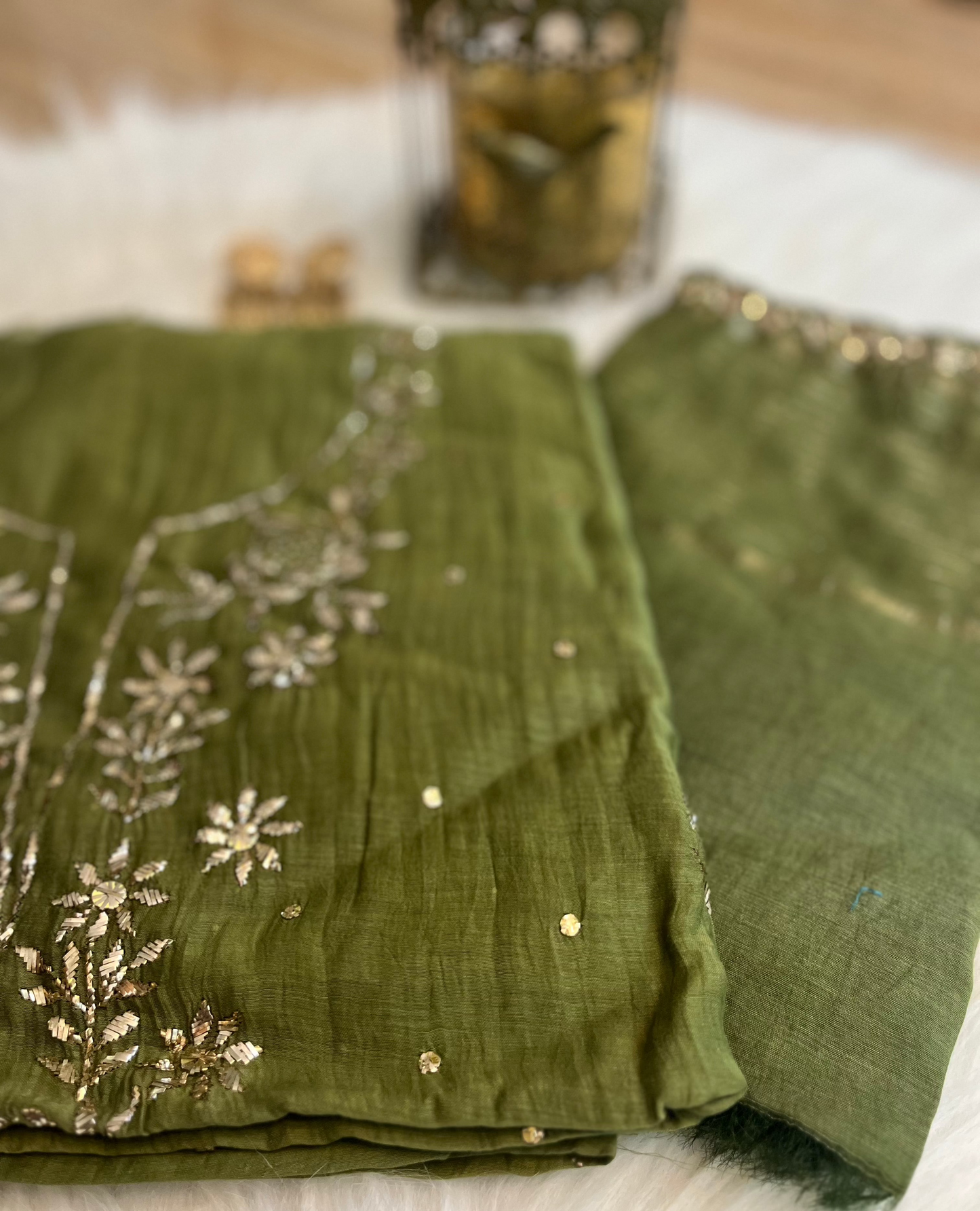 - Mehendi Green two-piece Suit in Mul chanderi fabric