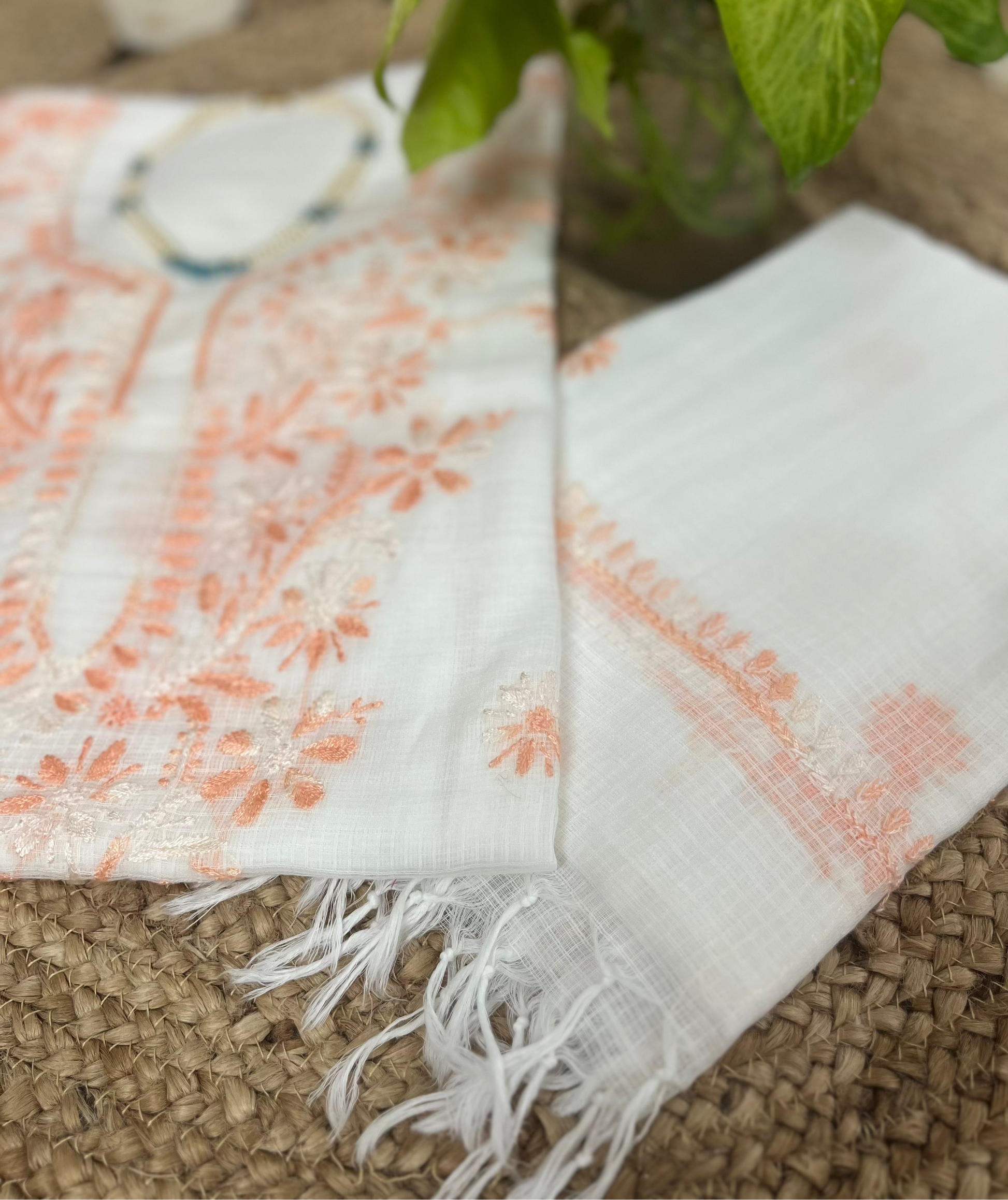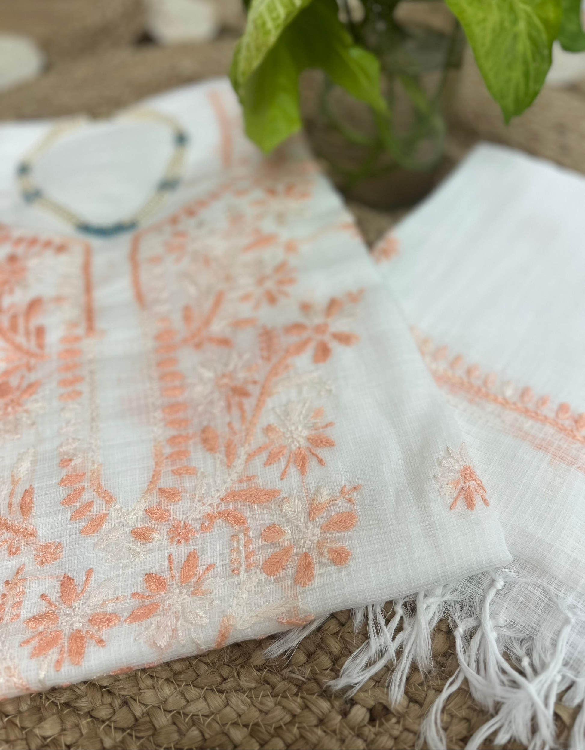 Embroidery: Handcrafted Lucknowi chikankari embroderiery with peach thread